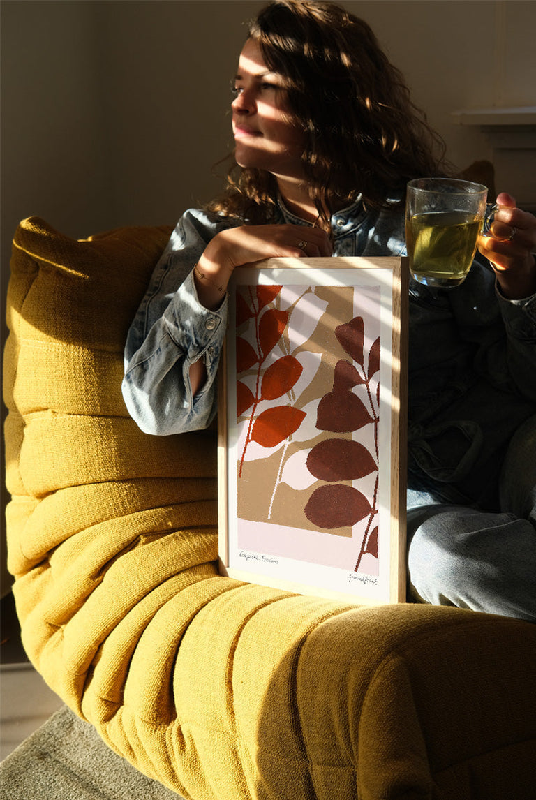 PrintedPlant is the creation of fashion designer Ger-Jan de Gilde. Inspired by nature after moving to the countryside, Ger-Jan photographs plants and transforms them into digital drawings. These drawings become hand-printed botanical art, made using stamps cut from wooden panels.