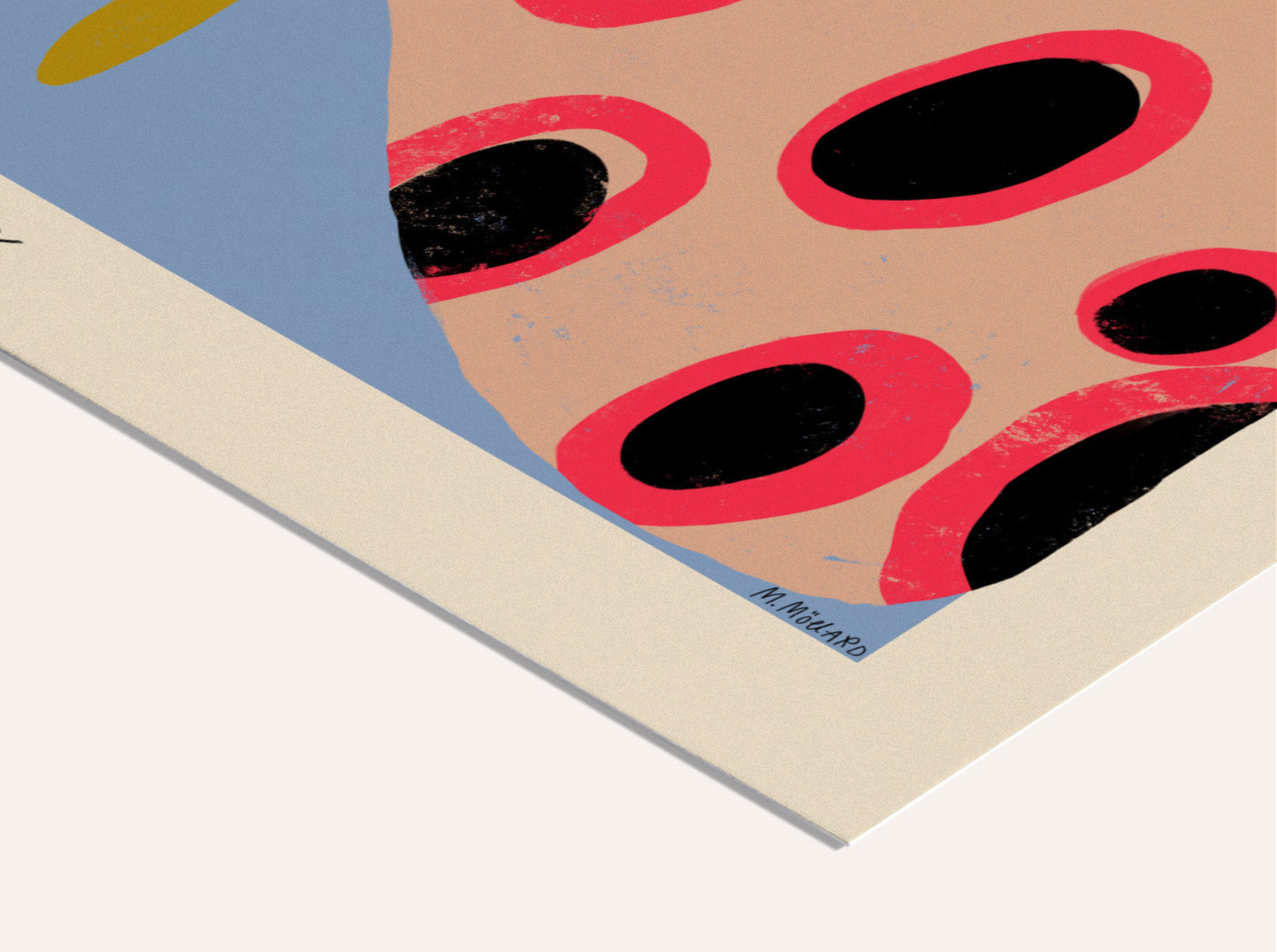 The art by the Swedish talent Madelen Möllard is vibrant, often featuring dreamy and bold shapes and floral motifs. She employs various techniques, including acrylics, cut-outs, and digital art, to evoke the perfect emotion in each piece.