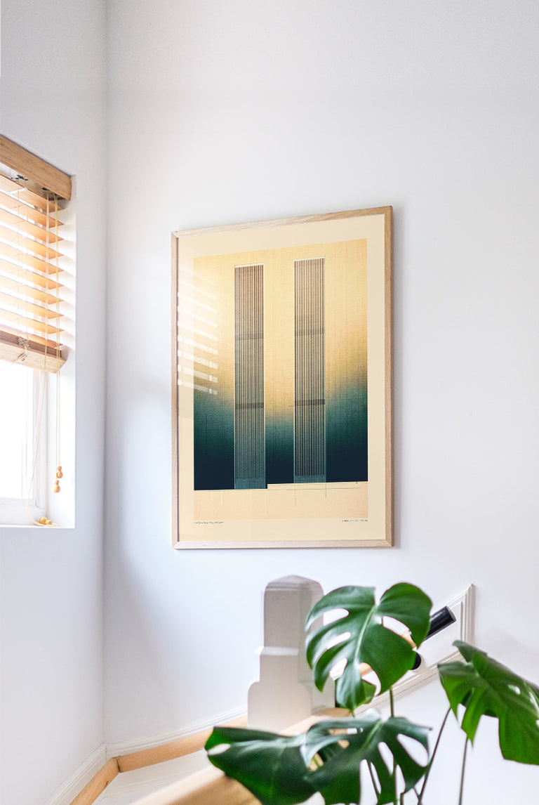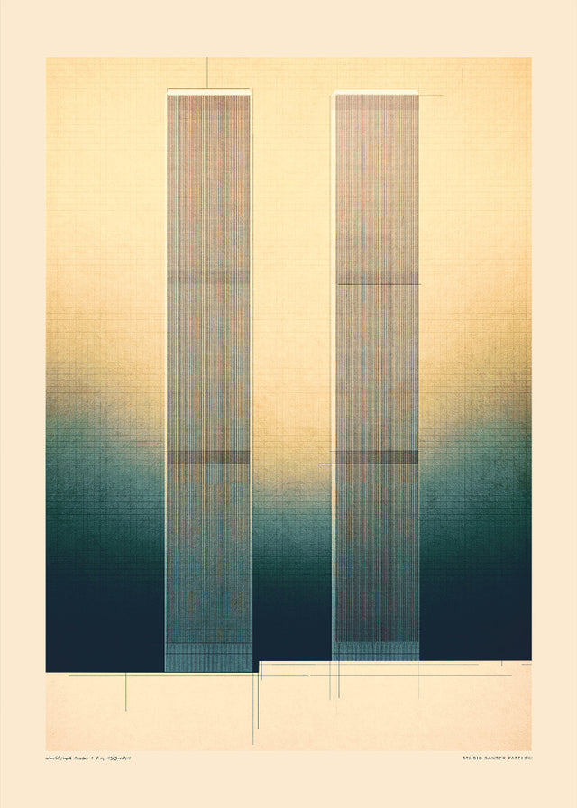 Sander Patelski, an Amsterdam-based book cover designer and digital artist, creates layered, textured works that celebrate iconic 20th-century architecture. His passion for architectural detail and compositional harmony shines through in each piece, blending tradition with modern digital techniques.