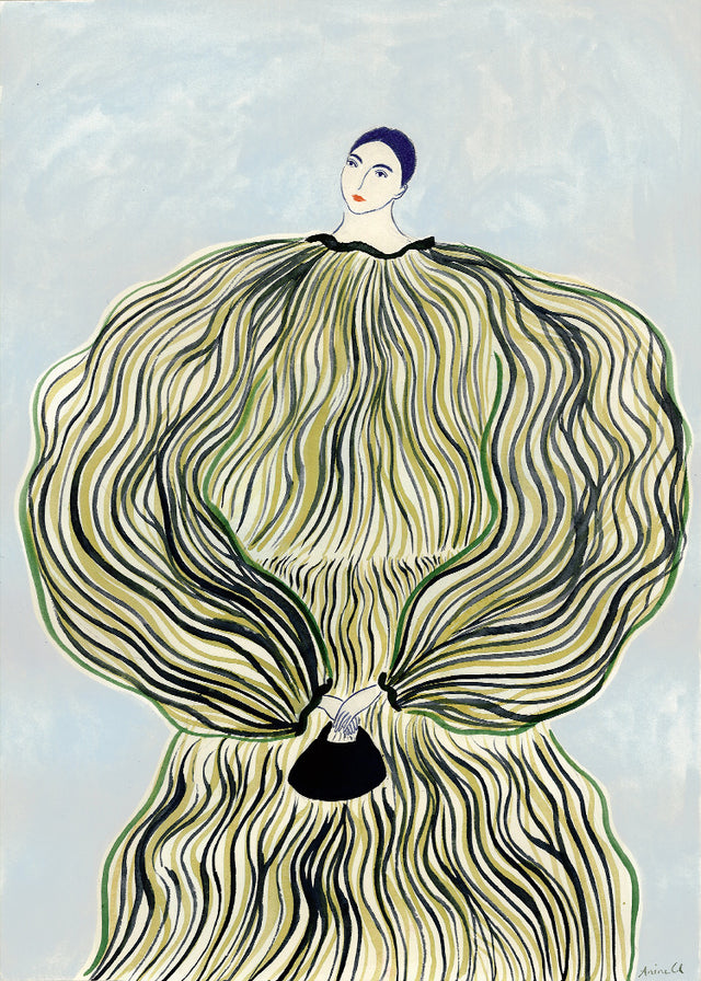Anine Cecilie Iversen, known as La Poire, is a Copenhagen-based artist and graphic designer. Her vibrant watercolors and bold silhouettes explore femininity and organic shapes, drawing inspiration from modern art, nature, and fashion to depict the vulnerability and grace of modern women.